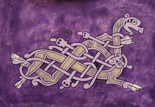 Celtic coasters- two Celtic dogs set of 4 (four)